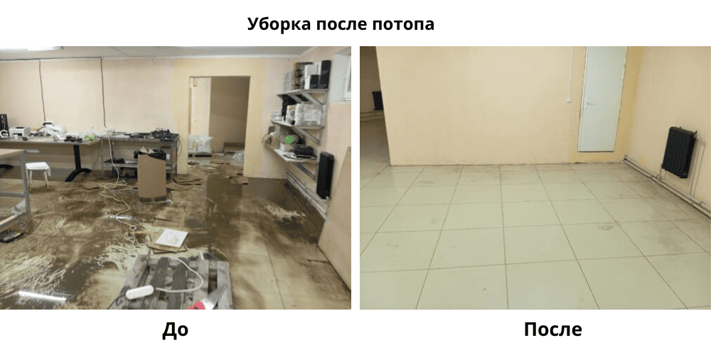 Время зависит от масштаба: небольшой потоп в однокомнатной квартире мы уберём за 4–6 часов, а сложный случай — например, уборка после длительного запустения — может занять 1–3 дня. Но мы не оставляем объект до полной чистоты, даже если это требует дополнительных смен. При этом стараемся минимизировать ваше неудобство: работаем быстро, тихо и без лишнего присутствия. Вы получаете готовый результат — без стресса и контроля с вашей стороны.