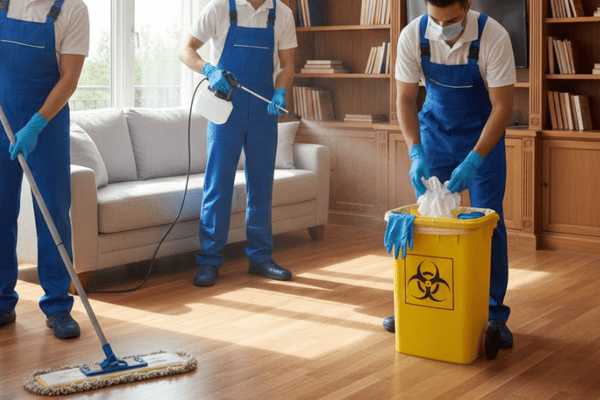 Лучше — ничего не трогать. Особенно если речь идёт о биологических загрязнениях, последствиях пожара или потопа. Самостоятельная уборка без защиты может быть опасной для здоровья, а попытки “подмести” — усугубить ситуацию (например, разнести споры плесени по всему дому). Просто обеспечьте доступ к помещению и дождитесь нашу бригаду. Всё остальное — наша зона ответственности.